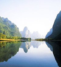 Guilin is regarded as the most picturesque city in China. Li River is a major theme of Guilin scenery. From Guilin to Yangshuo, the river travels 83 kilometers with both shores decorated with numerous green hills popped up out of the ground, a poetic and picturesque environment in which one cannot but feel relaxed and refreshed. As an old saying goes, this is the best scenery under heaven unfolding with clear rivers, green bamboos, as well as craggy peaks and pillars of limestone which must have been the models for the traditional landscapes painted for centuries on silk scrolls.